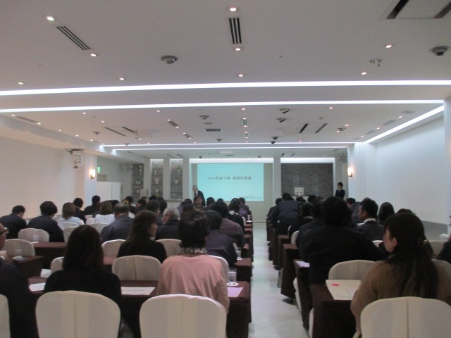 社長による全社方針の説明が行われ、全社員の理解と共有を確認し合いました。 -
